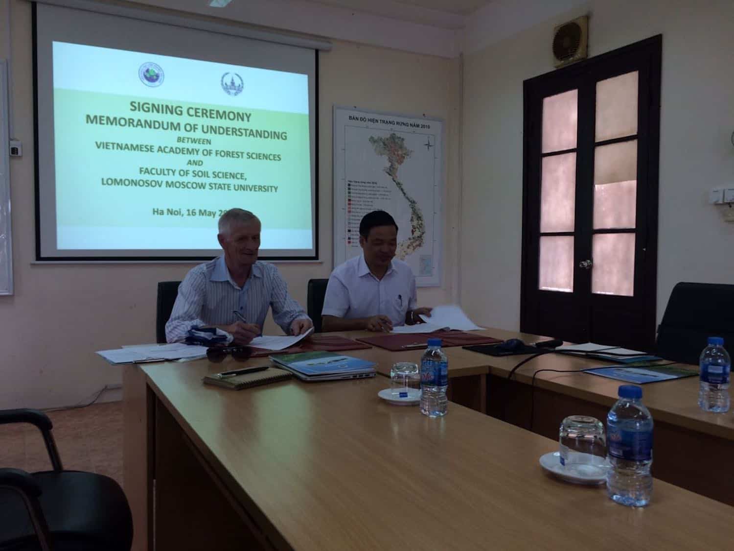 The MSU was represented by Valery Demidov, Professor of the Department erosion and soil protection at the Soil Science Faculty, and Dina Karpova, Leading researcher of the Department erosion and soil protection. The Vietnamese side was headed by Vo Hai Dao, President of the Vietnamese Academy of Forest Sciences (VAFS) and Phan Van Khoa, Dean of Faculty at the Vietnam National University of Forestry (VNUF).